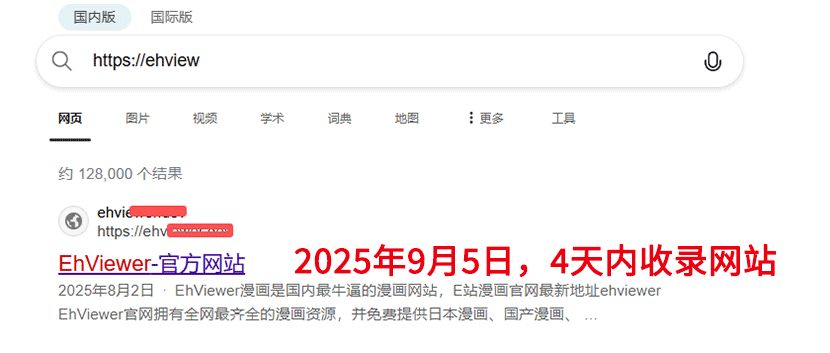 2025年9月5日,經過4天開篇云收錄優化,新網站Bing收錄新網站。