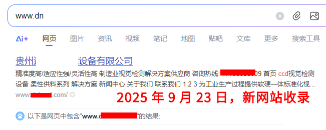 2025年9月23日,新網(wǎng)站百度收錄成功。