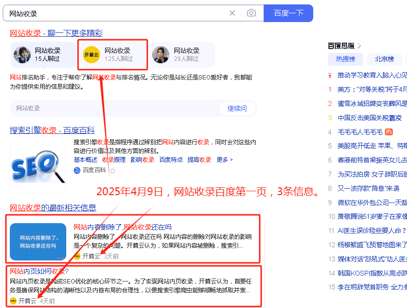 2025年4月9日,網站快速收錄網站收錄排名百度第一頁,如果您有網站需要做網站快速收錄,需要做百度收錄,需要做SEO優化,需要關鍵詞排名百度第一頁,可以聯系開篇云。