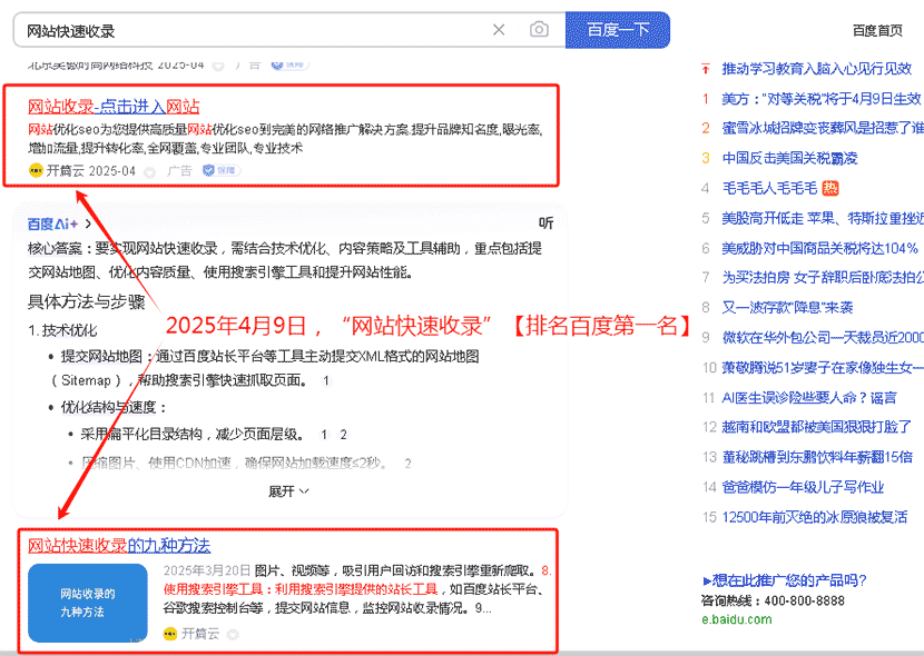 2025年4月9日,網站快速收錄網站收錄排名百度第一頁