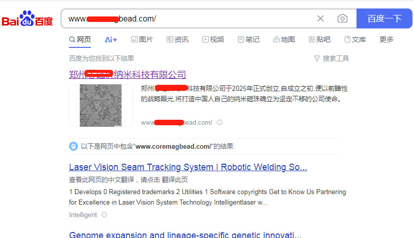 2025年4月25日,經過1天運作,新網站已經被百度收錄。