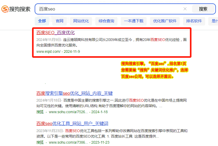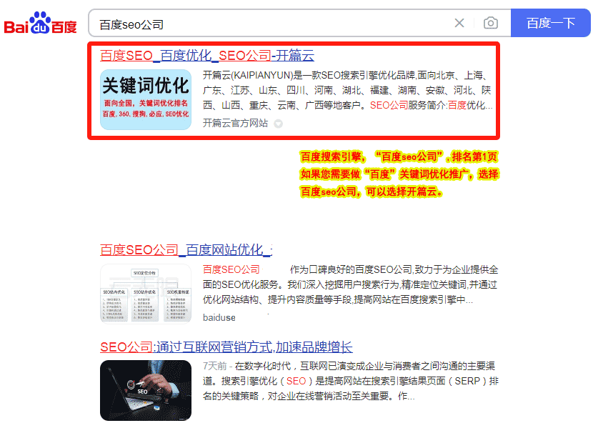 2024年11月14日,開篇云旗下網(wǎng)站關(guān)鍵詞“百度seo公司”、“整站seo”、“百度seo”、“網(wǎng)站優(yōu)化公司”排名第一頁。如果您正尋求對(duì)您的網(wǎng)站進(jìn)行關(guān)鍵詞優(yōu)化和推廣,以提升在百度、360搜索、搜狗和必應(yīng)等平臺(tái)上的可見度,開篇云將是您的理想選擇。